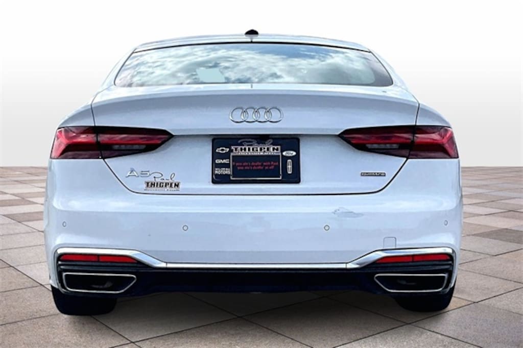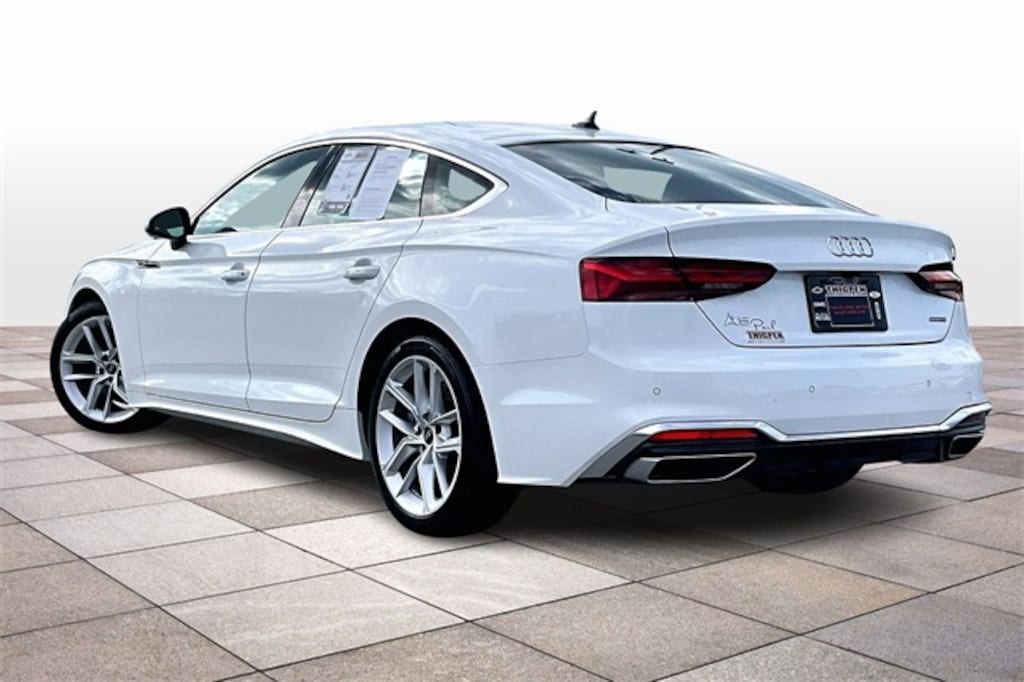 Arkona White 2024 Audi A5 Sportback 45 S line Premium Plus quattro quattro 2.0L 4-Cylinder TFSI 10.1" Portrait Touchscreen, 360-Degree Camera, Auto Emergency Braking, Auto LED Headlights, Backup Camera, Blind Spot Monitoring, Bluetooth w/ Streaming Audio, Forward Collision Alert, Front & Rear Park Assist, Lane Departure System, Lane Keeping System, Leather Seats, Memory Package, Panoramic Sunroof/Moonroof, Parking Sensors, Power Mirror Package, Power Package, Premium Audio Package, Premium Sound Package, Push Button Start, Remote Start, Reverse Brake Assist, Reverse Sensing, Sport Package, Wireless Charging, 4D Hatchback, 2.0L 4-Cylinder TFSI, 7-Speed Automatic S tronic, 10 Speakers, 2 Rear USB Charge Ports, 4-Wheel Disc Brakes, ABS brakes, Alarm System w/Motion Sensors, Audi Advanced Key, Audi Side Assist w/Pre Sense Rear, Audi Virtual Cockpit Plus, Auto High-beam Headlights, Auto-Dimming Exterior Mirrors w/Memory, Auto-dimming Rear-View mirror, Automatic temperature control, Bang & Olufsen Sound System w/3D Sound, Brake assist, Compass, Convenience Package, Delay-off headlights, Driver Seat Memory, Electronic Stability Control, Emergency communication system: Audi connect CARE, Exterior Parking Camera Rear, Four wheel independent suspension, Front Center Armrest, Front dual zone A/C, Front fog lights, Garage door transmitter: HomeLink, Genuine wood console insert, Genuine wood dashboard insert, Genuine wood door panel insert, Heated door mirrors, Heated Front Sport Seats, Heated steering wheel, Illuminated entry, Leather Seating Surfaces, Leather Shift Knob, Leather steering wheel, Leatherette Covered Center Console & Door Armrests, Low tire pressure warning, Outside temperature display, Overhead console, Power door mirrors, Power driver seat, Power Folding Exterior Mirrors, Power Liftgate, Power passenger seat, Power steering, Power windows, Premium Plus, Radio: Audi Sound System, Rain sensing wipers, Rear air conditioning, Rear seat center armrest, Remote keyless entry, SiriusXM w/360L, Speed-sensing steering, Speed-Sensitive Wipers, Split folding rear seat, Steering wheel mounted audio controls, Telescoping steering wheel, Tilt steering wheel, Top View Camera System, Traction control, Trip computer, Turn signal indicator mirrors, Wheels: 18" 5-Double-Spoke Design, Wireless Phone Charging Pad.