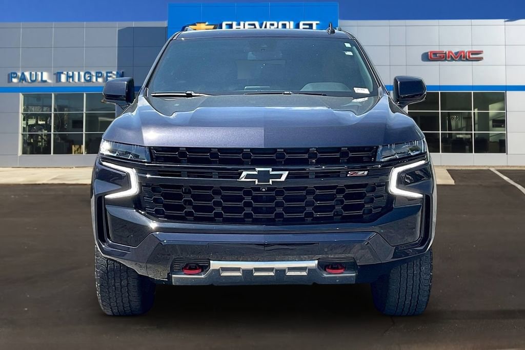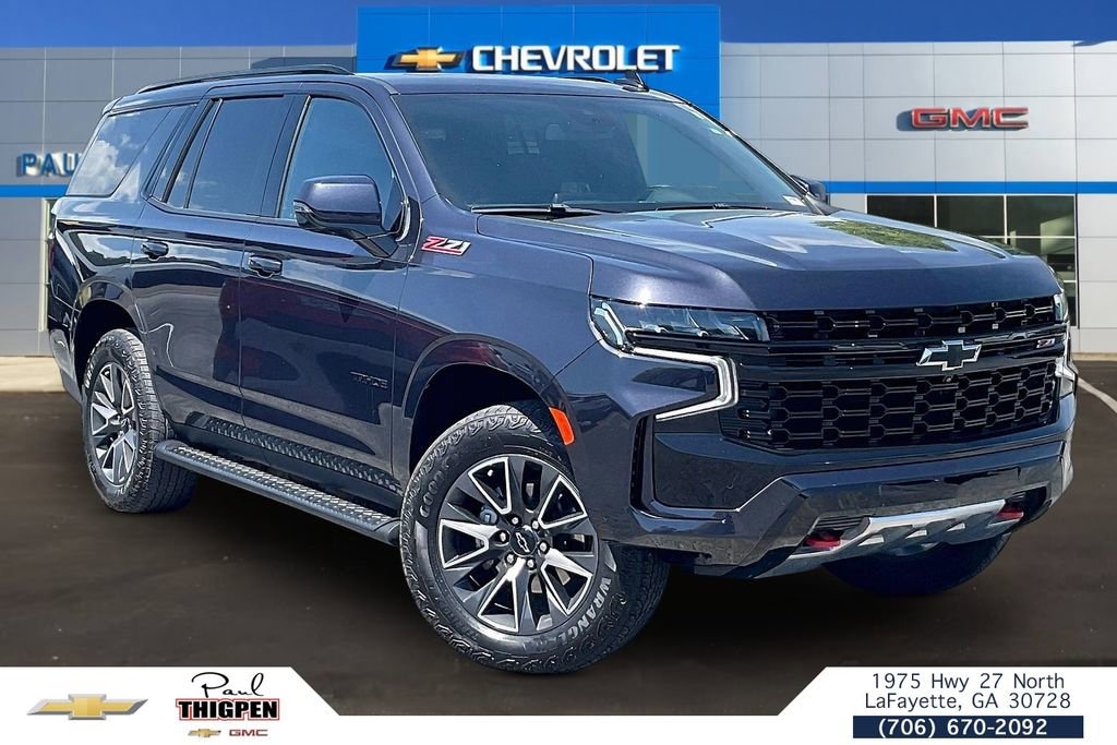 Recent Arrival!CARFAX One-Owner. Clean CARFAX. Tahoe Z71, 4D Sport Utility, EcoTec3 5.3L V8, 10-Speed Automatic with Overdrive, 4WD, Dark Ash Metallic, Black Leather.Driver Alert Package (Lane Change Alert w/Side Blind Zone Alert and Rear Cross Traffic Alert), Luxury Package (2nd Row Pwr Release 60/40 Split-Folding Bench Seat, 3rd Row 60/40 Power-Folding Split-Bench Seat, HD Surround Vision, Heated 2nd Row Outboard Seats, Heated Steering Wheel, Memory Settings, Outside Heated Power-Adjustable Mirrors, Power Tilt & Telescopic Steering Column, and Rear Pedestrian Alert), Preferred Equipment Group 2Z7 (1st & 2nd Row Color-Keyed Carpeted Floor Mats, 2-Speed Active Electronic AutoTrac Transfer Case, Auto-Dimming Inside Rear-View Mirror, Black Tubular Assist Steps, Bose 9-Speaker Stereo Audio System Feature, Bright Front & Rear Door Sill Plates, Color-Keyed Carpeting Floor Covering, Driver & Front Outboard Passenger Airbags, Enhanced Driver Information Center, Floor Console w/Storage Area, Front High-Approach Angle Fascia, Hands-Free Rear Power Programmable Liftgate, Hill Descent Control, LED Daytime Running Lamps, Memory Settings for Driver, Red Horizontal-Mounted Recovery Hooks, Remote Start, SiriusXM w/360L, Universal Home Remote, Wireless Charging, and Wrapped Steering Wheel), Tahoe Z71, 4D Sport Utility, EcoTec3 5.3L V8, 10-Speed Automatic with Overdrive, 4WD, Dark Ash Metallic, Black Leather, 10-Way Power Driver & Passenger Seat Adjusters, 1st, 2nd & 3rd Rows All-Weather Floor Liners (LPO), 3.23 Rear Axle Ratio, 3rd row seats: split-bench, 4-Wheel Disc Brakes, 9 Speakers, ABS brakes, Air Conditioning, Alloy wheels, AM/FM radio: SiriusXM with 360L, Apple CarPlay/Android Auto, Auto High-beam Headlights, Auto-dimming Rear-View mirror, Automatic temperature control, Brake assist, Bumpers: body-color, Compass, Delay-off headlights, Driver door bin, Driver vanity mirror, Dual front impact airbags, Dual front side impact airbags, Dual-Pane Power Panoramic Sunroof, Electronic Stability Control, Emergency communication system: OnStar and Chevrolet connected services capable, Four wheel independent suspension, Front anti-roll bar, Front Bucket Seats, Front Center Armrest, Front dual zone A/C, Front High-Back Reclining Bucket Seats, Front reading lights, Fully automatic headlights, Garage door transmitter, Heated door mirrors, Heated Driver & Front Passenger Seats, Heated front seats, Illuminated entry, Infotainment Display, Leather-Appointed Seat Trim, Low tire pressure warning, Memory seat, Navigation System, Occupant sensing airbag, Outside temperature display, Overhead airbag, Overhead console, Panic alarm, Passenger door bin, Passenger vanity mirror, Power door mirrors, Power driver seat, Power Liftgate, Power passenger seat, Power Release 2nd Row Bucket Seats, Power steering, Power windows, Premium audio system: Chevrolet Infotainment 3 Premium, Premium Smooth Ride Suspension, Radio: Chevrolet Infotainment 3 Premium System, Rain sensing wipers, Rear air conditioning, Rear anti-roll bar, Rear reading lights, Rear seat center armrest, Rear Seat Media System, Rear window defroster, Rear window wiper, Remote keyless entry, Roof rack: xxxxxx, Security system, Speed control, Speed-sensing steering, Split folding rear seat, Spoiler, Steering wheel mounted audio controls, Tachometer, Telescoping steering wheel, Tilt steering wheel, Traction control, Trip computer, Variably intermittent wipers, Voltmeter, and Wheels: 20 x 9 Machined Aluminum.* *Discounted price Includes our Paul Thigpen Chevrolet GMC La Fayette TRADE-IN ASSISTANCE discount of $2,000.00* * * *Discounted price Includes our Paul Thigpen Chevrolet GMC La Fayette FINANCE WITH US -N- SAVE discount of $1,250.00* * - All discounts & promo offers are reflected in in discounted pricing (see qualifying details below) - To qualify for Trade-In Assistance - customers must trade-in a 2010 or newer vehicle. Trade must be in working condition wit