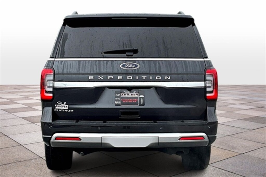 Dark Matter Gray Metallic 2024 Ford Expedition Platinum RWD EcoBoost 3.5L V6 GTDi DOHC 24V Twin Turbocharged **LOCAL TRADE**, 12.3" HD Color Driver Cluster, 15.5" Color Touchscreen, 360-Degree Camera, 3rd Row Seating, 4G WiFi Hotspot Telematics, Auto LED Headlights, Backup Camera, Cold Weather Package, Leather Seats, LED Fog Lights, Memory Package, Multi Zone Climate Control, Panoramic Sunroof/Moonroof, Power Mirror Package, Power Package, Power Running Boards, Premium Audio Package, Premium Sound Package, Rear Climate Package, Tow Package, Trailer Package, Wireless Charging, 4D Sport Utility, EcoBoost 3.5L V6 GTDi DOHC 24V Twin Turbocharged, 10-Speed Automatic, RWD, 22 Speakers, 26mm Engine Radiator, 3.73 Axle Ratio, 360-Degree Camera w/Trailer Reverse Guidance, 3rd row seats: split-bench, 4-Wheel Disc Brakes, ABS brakes, Adaptive suspension, Adjustable pedals, Auto High-beam Headlights, Auto-dimming door mirrors, Automatic temperature control, Brake assist, Compass, Delay-off headlights, Electronic Stability Control, Emergency communication system: SYNC 4 911 Assist, Equipment Group 600A Standard Package, Exterior Parking Camera Rear, Four wheel independent suspension, Front Center Armrest, Front dual zone A/C, Front fog lights, Fully automatic headlights, Garage door transmitter, Genuine wood console insert, Genuine wood dashboard insert, Genuine wood door panel insert, Heated door mirrors, Heated steering wheel, Heated/Ventilated Prem Lthr Front Captain's Chairs, Heavy-Duty Trailer Tow Package, Illuminated entry, Integrated Trailer Brake Controller, Leather steering wheel, Low tire pressure warning, Memory seat, Navigation system: Connected Navigation, Outside temperature display, Overhead console, Panic alarm, Pedal memory, Power door mirrors, Power Liftgate, Power passenger seat, Pro Trailer Backup Assist, Radio data system, Radio: B&O Unleashed Sound System by Bang & Olufsen, Rain sensing wipers, Rear air conditioning, Rear audio controls, Rear window wiper, Remote keyless entry, Security system, Speed control, Speed-sensing steering, Speed-Sensitive Wipers, Split folding rear seat, Spoiler, Steering wheel memory, Steering wheel mounted audio controls, SYNC 4 w/Enhanced Voice Recognition, Telescoping steering wheel, Tilt steering wheel, Traction control, Trip computer, Turn signal indicator mirrors, Wheels: 22" 12-Spoke Polished Aluminum.