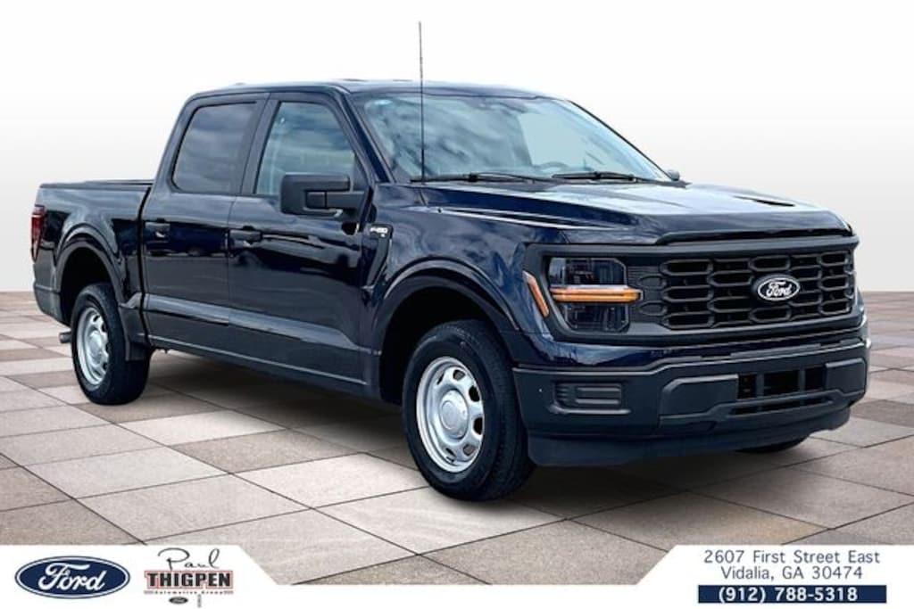 Vidalia Ford Lincoln 2607 E 1st St Vidalia, Georgia 30474 912-788-5318 Equipment Group 101A Standard, GVWR: 6,426 lbs Payload Package, Ford Blue Advantage: Blue Certified Certified, 3.55 Axle Ratio, 4-Wheel Disc Brakes, 6 Speakers, ABS brakes, Air Conditioning, AM/FM radio: SiriusXM with 360L, Auto High-beam Headlights, Brake assist, Cloth 40/20/40 Front Seat, Compass, Delay-off headlights, Driver door bin, Dual front impact airbags, Dual front side impact airbags, Electronic Stability Control, Emergency communication system: SYNC 4 911 Assist, Front anti-roll bar, Front Center Armrest, Front License Plate Bracket, Front reading lights, Front wheel independent suspension, Fully automatic headlights, Heated door mirrors, Illuminated entry, Low tire pressure warning, Navigation system: Connected Navigation, Occupant sensing airbag, Outside temperature display, Overhead airbag, Overhead console, Panic alarm, Passenger door bin, Passenger vanity mirror, Power door mirrors, Power steering, Power windows, Radio data system, Radio: AM/FM SiriusXM w/360L, Rear step bumper, Remote keyless entry, Security system, Speed control, Split folding rear seat, Steering wheel mounted audio controls, SYNC 4 w/Enhanced Voice Recognition, Tachometer, Telescoping steering wheel, Tilt steering wheel, Traction control, Trip computer, Variably intermittent wipers, Voltmeter, and Wheels: 17" Silver Steel. Antimatter Blue Metallic 2024 Ford F-150 XL RWD 2.7L V6 EcoBoost 3.55 Axle Ratio, 4-Wheel Disc Brakes, 6 Speakers, ABS brakes, Air Conditioning, AM/FM radio: SiriusXM with 360L, Auto High-beam Headlights, Brake assist, Cloth 40/20/40 Front Seat, Compass, Delay-off headlights, Driver door bin, Dual front impact airbags, Dual front side impact airbags, Electronic Stability Control, Emergency communication system: SYNC 4 911 Assist, Equipment Group 101A Standard, Front anti-roll bar, Front Center Armrest, Front License Plate Bracket, Front reading lights, Front wheel independent suspension, Fully automatic headlights, GVWR: 6,426 lbs Payload Package, Heated door mirrors, Illuminated entry, Low tire pressure warning, Navigation system: Connected Navigation, Occupant sensing airbag, Outside temperature display, Overhead airbag, Overhead console, Panic alarm, Passenger door bin, Passenger vanity mirror, Power door mirrors, Power steering, Power windows, Radio data system, Radio: AM/FM SiriusXM w/360L, Rear step bumper, Remote keyless entry, Security system, Speed control, Split folding rear seat, Steering wheel mounted audio controls, SYNC 4 w/Enhanced Voice Recognition, Tachometer, Telescoping steering wheel, Tilt steering wheel, Traction control, Trip computer, Variably intermittent wipers, Voltmeter, Wheels: 17" Silver Steel.